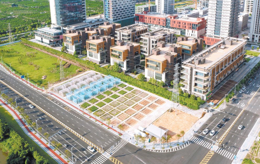 這一片規(guī)劃整齊、生機(jī)盎然的試驗田,是江門雙碳實驗室開展實驗的“二氧化碳生物利用示范基地”。周華東 攝